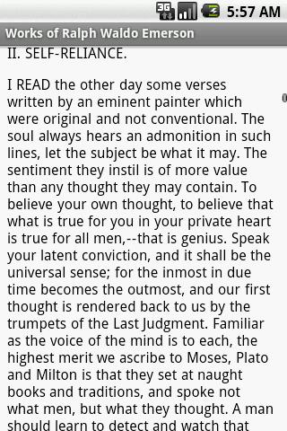 Indulge Yourself with the best classic literature on Your Android. Navigate easily to any essay or poem from Table of Contents or search for the words or phrases. Features Navigate from Table of Contents or search for words or phrases Make bookmarks, notes, highlights Searchable and interlinked. Access the e-book anytime, anywhere - at home, on the train, in the subway.