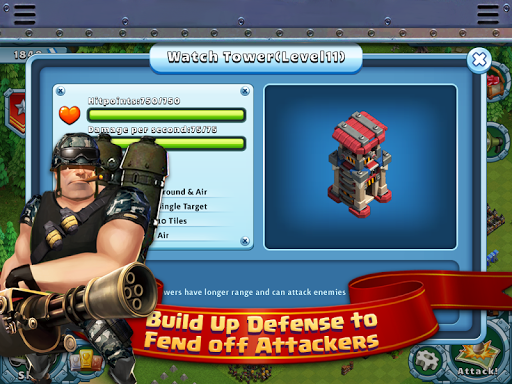 Experience the heart-pounding, nerve-breaking of the modern combat in the palm of your hand! In this game, you command your own troops, make your own tanks, produce your own fighter planes and more importantly wage epic battles against top players overall the world. You can attack well defended NPCs or smartly built base built by real players! This game has the fun and depth of MMRPG but very easy to learn and so casual that you can play it at any time. It has multiple leagues and group Battles / Clash in every league.