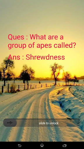 This is an World General knowledge Lock Screen application. Whenever you lock your phone and unlock it, there is a new world general knowledge Question and Answer display on lock screen. It helps to improve your knowledge. There are more than 70000 Question and Answer included. Here we have provide a different collection of background photos for set it on lock screen. You can also set custom size and color of words.