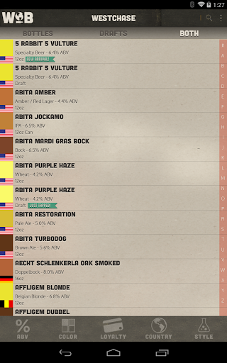 Have a loyalty card with World of Beer? You can put in your card number and have access to your complete loyalty info! Instantly check your loyalty count and view your entire loyalty list. Looking for a beer you haven't had? Use our loyalty filter to show new beers for you to try out! Forget your card at home? Just turn your phone to the side and show others your virtual loyalty card!