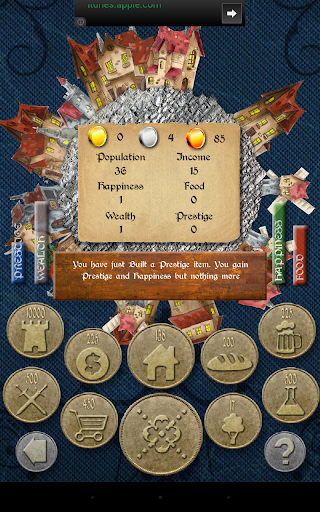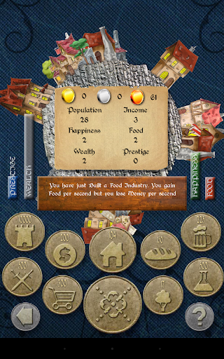 - 4 major parameters.. Happiness, Food, Prestige and wealth makes the game interesting. If you zero one of them the consequences are devastating.