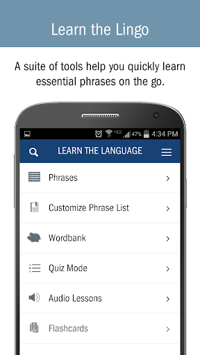 - Built-in flashcards and a quiz mode to help employees learn critical phrases