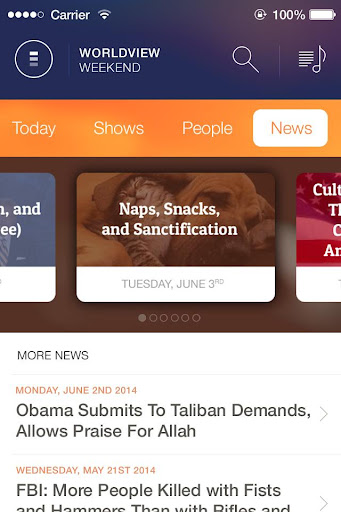 With this application you can listen to Worldview Weekend Radio broadcasts, view DVD clips from your favorite speakers, login to your Situation Room account and effortlessly find new content. You can also stream Worldview Weekend TV and contact Brannon Howse or donate to the Worldview Weekend Foundation.
