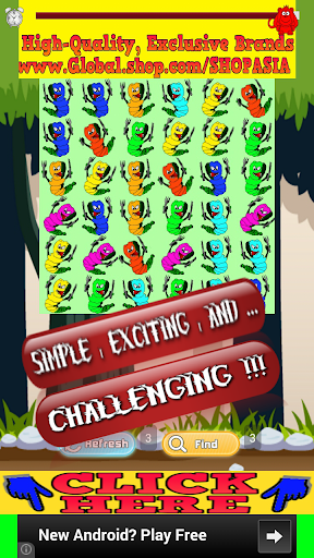 Another thrilling feature to the Worms 1 2 3 Games Free that makes it even more awesome than just a matching Worms Games– you must find the icons that link together in some way! When you make a linked match, the Worms Games Free will show the link. You also get some help along the way in Worms Games. You can use the REFRESH button 3 times burn, this mixes up the game cards so it is easier to find linking matches. You can also use the FIND button 3 times , and this will find the matching links for you. This is the Baby Worms 1 2 3 Games Free for kids and free to download. Great if you are looking for the ideals on Worms Games. Have FUN !!!