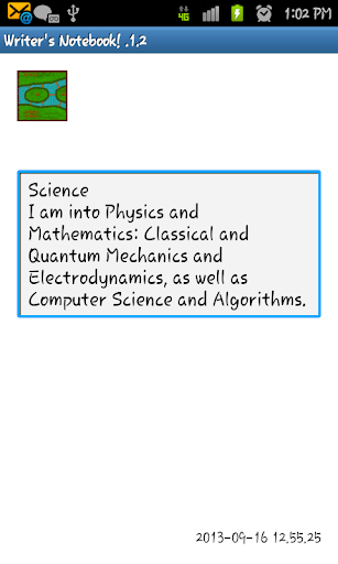 This app was designed to provide writers and, in general, people that might be interested on writing, with a software model of a notebook, where the different entries are organized in a hierarchical structure, making it easier for the writer to keep his notes in order, our even to write a book using this tool.