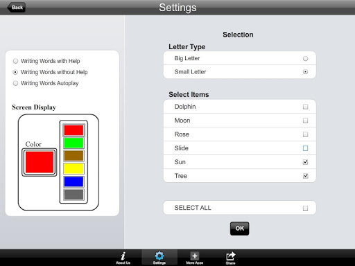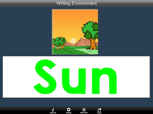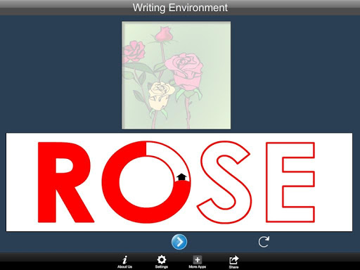 This program helps the student to learn to write things around our daily environment words (Ex. Rose). This program can be used with a finger or a stylus. The program allows the child to select color, and with a guiding arrow for help or without help or Autoplay which lets the student watch as the apps write the environment words.This program can be used by kindergarten children or learning-disabled children of various ages.