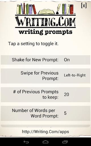 Writing.Com presents "Writing Prompts", the Android app with an endless supply of creative inspiration!