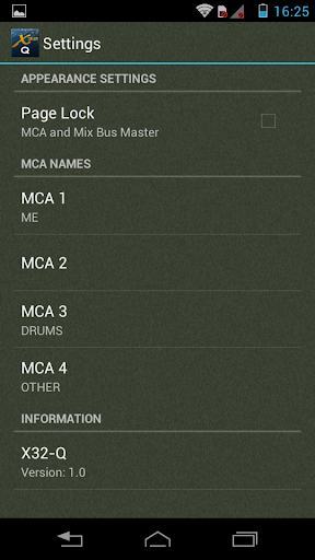 BEHRINGER X32-Q for Android adds full personal monitor mixing capabilities to the X32 Digital Mixer. Musicians can control their own monitor mix with full access to all 32 input channels individually or through the app's MCA (Mix Control Association) faders. Each band member can group inputs to four MCAs allowing for one-fader control over a group of channels, greatly simplifying the mix during performance.