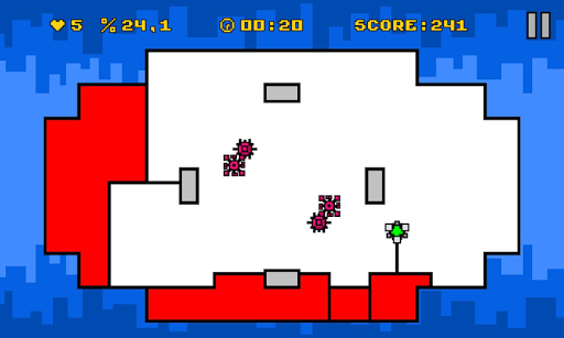 Rule nano-robot with gestures in order to clean xonix space from invader bacteria, and tap to screen in order to stop. Beware! As you begin cutting in a dangerous space, you become vulnerable, besides you cannot stop in this area until you finish cutting! No time to wait, because nano-robot has a countdown timer, and when it comes to zero, it blows!