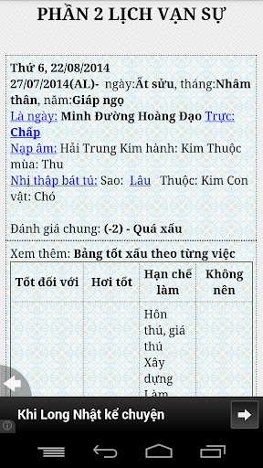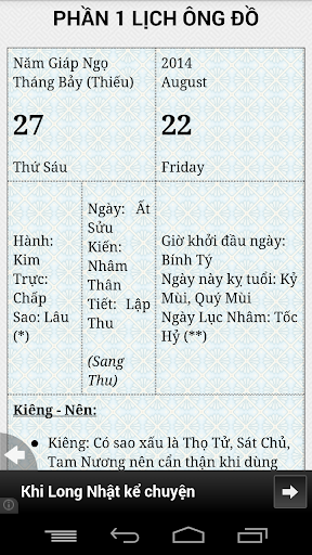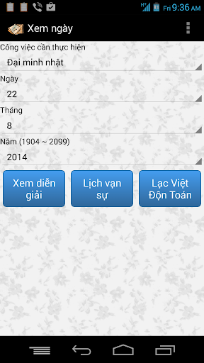 Bạn đang muốn xem ngày tốt để xây nhà, sửa nhà, cưới hỏi, hay thậm chí để ...cắt tóc? Bạn cần một công cụ tính toán ngày âm dương, kiểm tra cung hoàng đạo cũng như xem Lạc Việt độn toán? Xin mời các bạn trải nghiệm thử chương trình "xem ngày". Đây là một ứng dụng nhỏ gọn nhưng có thể cho bạn một thời giải đáp ngắn gọn và súc tích về việc nên hay không nên thực hiện một sự kiện trọng đại nào đó trong hàng trăm công việc mà bạn lựa chọn trong ngày đã định.