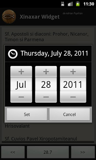 Widget-ul afiseaza sfintii zilei curente, conform calendarului Bisericii Ortodoxe Romane.
