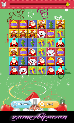 The Christmas themed Xmas Fun Match game is a free timed five round matching game, featuring Santa and Christmas goodies. The first round in the Xmas Fun Match is 100 seconds and each after that is 20 seconds less, so will have the time to improve each round.