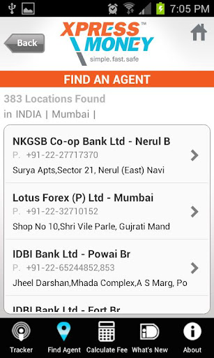 Find an Agent: Using country, city and zip code or simply try the ‘Use Current Location’ option and get maps and directions to find your nearest agent location