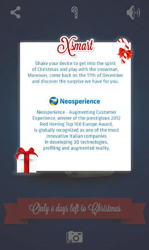 Shake your device to really enter into the spirit of Christmas and watch what happens clicking on the snowman. Moreover, from the 17th of December, you can scan your greeting card, available also at www.neosperience.com, to find out the gifts we reserved for you.