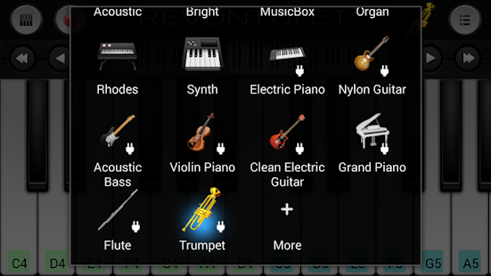 Perfect Piano: https://play.google.com/store/apps/details?id=com.gamestar.perfectpiano