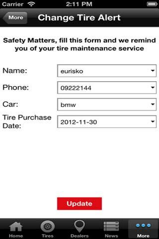 With the application, you can keep track of your car tires, save money, extend the tires life, and have a safe drive!
