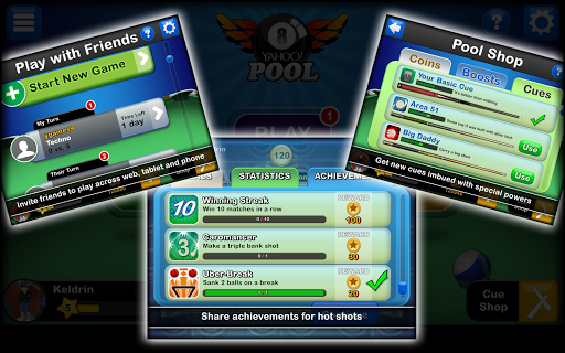 Rack 'em up with Yahoo Pool! Yahoo Games, home of one of the world's most popular versions of online eight ball pool, introduces an all-new, incredible, cross device pool experience for the billiards and 8-ball lover. Choose your favorite table style, play tournaments, and win prizes. Grab your cue, invite some friends and show 'em how to run the table