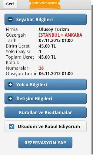 Yerver; uygulamasından şehirlerarası otobüs biletleri, yurtiçi ve yurtdışı uçak biletleri sefer saatlerini ve fiyat bilgilerini kontrol edebilir, istediğiniz taşımacı firmayı seçebilir ve bu biletleri anında satın alabilirsiniz veya rezervasyon yapabilirsiniz. yerver.com web sitesinden yaptığınız bir işlemi bu program üzerinden devam ettirebilirsiniz. Tersini de yapabilirsiniz. İşlemleriniz Online olarak gerçekleştirilmektedir.
