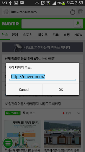 - 인터넷 주소가 아닐 경우 자동으로 검색어로 인식하여 검색.
