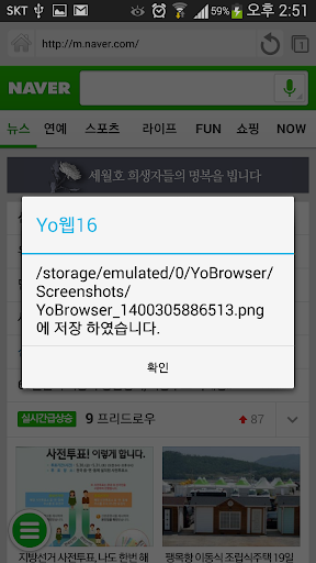 - 브라우저 상에 보이는 화면을 캡쳐하여 /YoBrowser/ScreenShots 폴더에 저장.