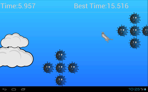 Uratuj kotka i steruj nim tak by nie wpadł na minę! Powyżej 25 sekund miny nadlatują z dwóch stron ekranu. Rekord programisty wynosi 106 sekund, jesteś lepszy? :)