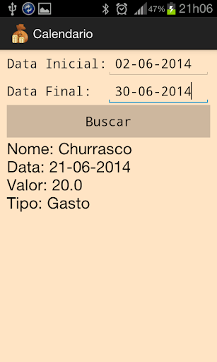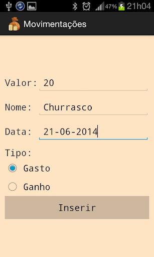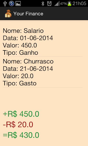 - Visualização Do saldo registrado no aplicativo até o momento;