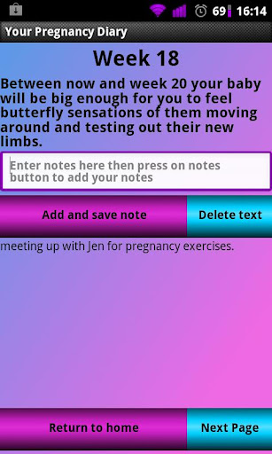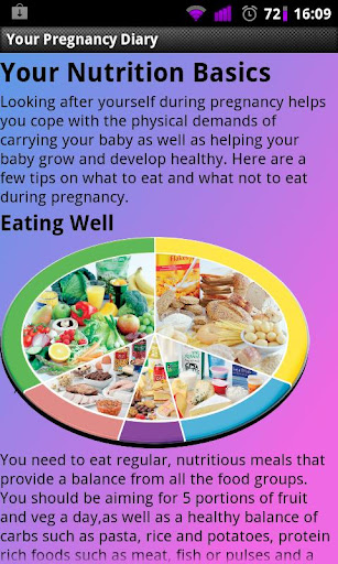 The app includes a diary feature that explains what is happening each week of the pregnancy from week 8 to week 42 and also allows you to input notes when needed.