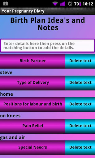 The last 2 features are a birth plan so you can put in exactly what you want to happen during labour and also a names idea feature so you can make notes of any names you hear and like.