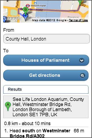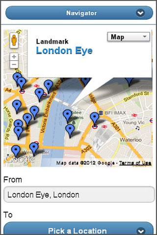 Your Window to London contains information and images relating to 60 landmarks that have been directly integrated within Google Maps, to provide directions from your current location to a landmark of your choice.