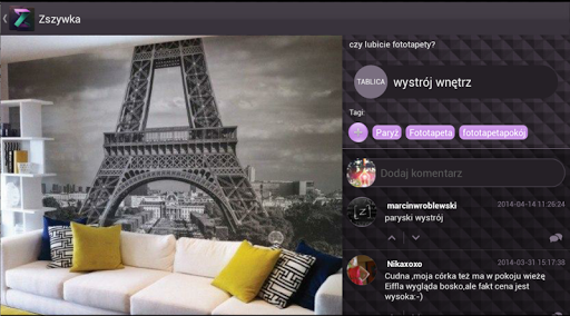 Największy graficzny serwis społecznościowy już teraz w Twoim tablecie i wszystkich telefonach z Androidem od wersji 2.3.3 ! Zszywka.pl to portal pełen inspiracji i największy tego typu serwis w Polsce. Hasło przewodnie dla naszej aplikacji to ‘odkrywaj i kolekcjonuj na swoim urządzeniu najciekawsze inspiracje w sieci’. Masa kategorii publikowanych zdjęć, nowe, nigdzie wcześniej nie wprowadzone funkcje, bezpłatny dostęp i prosty interfejs, połączone ze społecznościowym charakterem portalu i pełną personalizacją konta użytkowania to tylko część powodów, dla których aplikacja zszywka.pl tak bardzo wyróżnia się w polskiej przestrzeni Internetu.