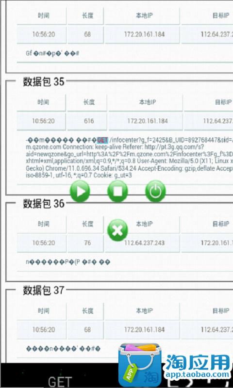 ④左边第一个按钮开启抓包,中间按钮停止抓包启动数据查看。右边按钮退出软件