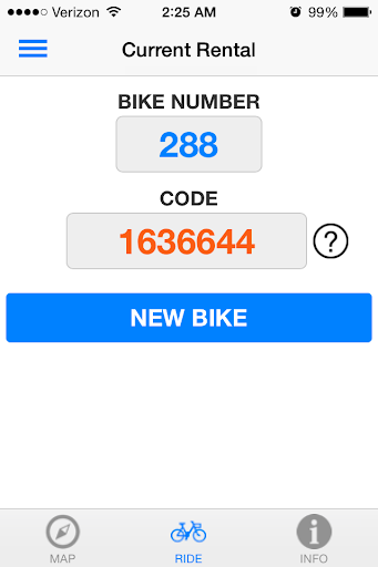 3. Borrow a Bike - on the Ride screen, enter the bike number printed on the Zagster bike you want to ride, and hit “Start Ride.” Use the code provided to unlock the bike.
