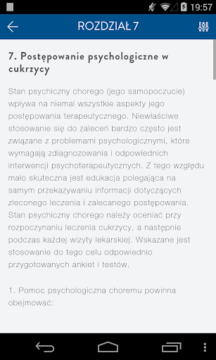 Aplikacja udostępnia pełen zakres treści najnowszych Zaleceń Polskiego Towarzystwa Diabetologicznego wydanych w 2014 r. Jest przydatnym narzędziem w codziennej praktyce lekarza diabetologa, internisty, lekarza rodzinnego oraz lekarzy innych specjalności. Zawiera między innymi algorytmy diagnostyczne i terapeutyczne dotyczące postępowania w różnych stanach związanych z cukrzycą. Łatwy dostęp poprzez urządzenia mobile pozwala na ich wykorzystywanie w każdych okolicznościach codziennej praktyki lekarskiej.