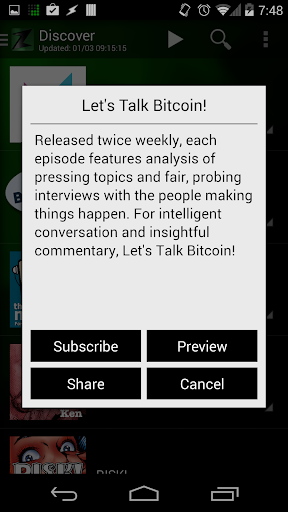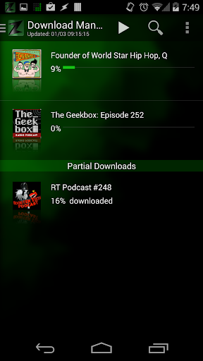 Zcasts is a free, ad-supported pod-catcher that aggregates RSS podcast feeds and allows the user to browse and add (subscribe) to them through your mobile device. The episodes can be downloaded or streamed on the device. The goal is to create a simplified and intuitive pod-catcher. There is an option to remove ads as well as incorporate future premium features for $0.99.