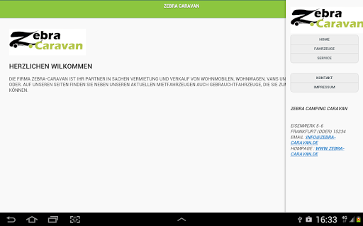 Die Firma Zebra-Caravan ist Ihr Partner in Sachen Vermietung und Verkauf von Wohnmobilen, Wohnwagen, Vans und Zubehör in Frankfurt /Oder. Auf unseren Seiten finden Sie neben unseren aktuellen Mietfahrzeugen auch Gebrauchtfahrzeuge, die Sie zum günstigen Preis erwerben können.