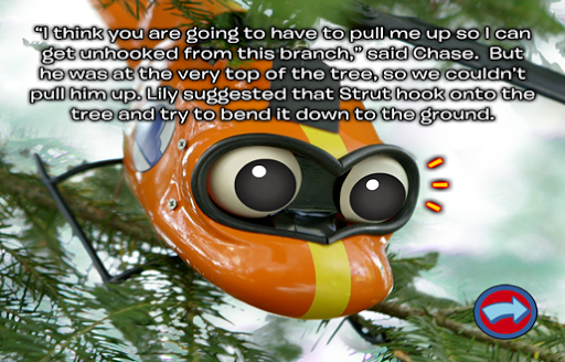 In this interactive e-book, Chase the helicopter starts sleep flying while taking a nap. Zack and Lily try to wake him, but not before he crashes into a tree and gets stuck at the top. Zack, Lily and Strut the crane try to free their sleepy friend from the tree.