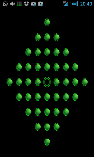 To remove peg touch the peg you want to move and than touch the empty space you want to move it to. The skipped peg gets deleted. The place with the two ovals is the place where the last peg has to be when the game is solved. To reset/undo/exit use the back button.