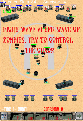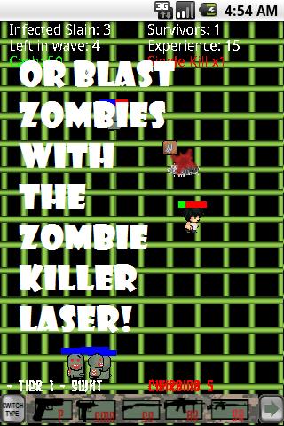 You are the operator of a laser defense system (recently nicknamed the "Zombie Killer"), the first line of defense that was set up in the event of a zombie outbreak. Your goal is to contain the outbreak while coordinating soldiers and survivors for evacuation. Lead the survivors of this outbreak to safety and do not let the Zombie outbreak get out of hand! Take command of allied forces in this Zombie Tower Defense / Real Time Strategy (RTS) game.