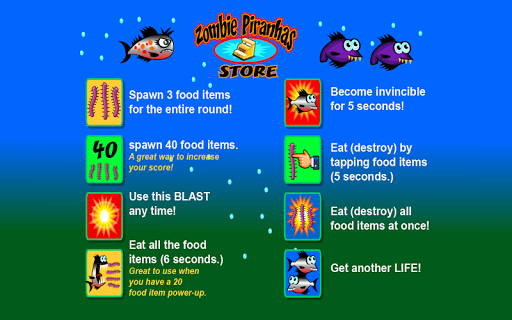 Eat BRAINS with Zombie Piranhas! Save "fish bucks" and spend them in the "store." Zombie Piranha Apocalypse- starts now....It's like Angry Birds underwater. It's like Walking Dead with fish. It's got the humor of The Simpsons without the cynicism. It's like Sponge Bob but not as much blabbing. It's got the excitement of a pack of seahorses. It's World War Z without the stupidity. It's like flappy bird with fins! It's Flipper but up-to-date. Dolphins, octopus, and other underwater creatures fight with the zombies in a an undersea world that never ends. If you like Flappy Bird you won't like this game because it's so much better. If you like a cute version of Night of the Living Dead than this game is for you. It's Minecraft with bubbles. There's no goats so there's no simulator but it could be considered similar to Spore. The artwork is a lot better that Stickman, that's for sure. But it might take a Doodle Army to beat the Zombie Piranhas. It's an underwater safari without the plants but with the zombies. It's a game of life but under the sea in an Octopus's Garden in the shade. It's where you'd like to be.