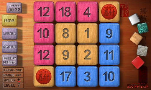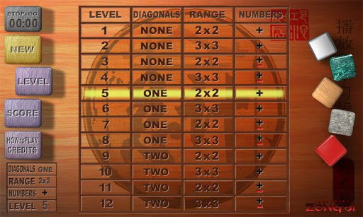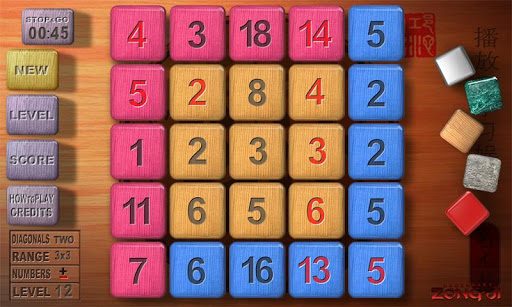 Zong-Ji is a strategy game which uses positive and negative numbers. The challenge is to solve the dice table which form the game matrix and make it fit altogether.