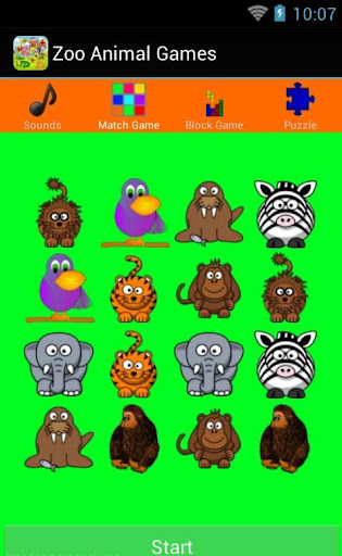 In the Zoo Animal Match Game up to 24 different images are presented (your device may not display all 24). These images are concealed behind a wooden panel. To win, the player must remember the location of each image and match pairs to complete the game.