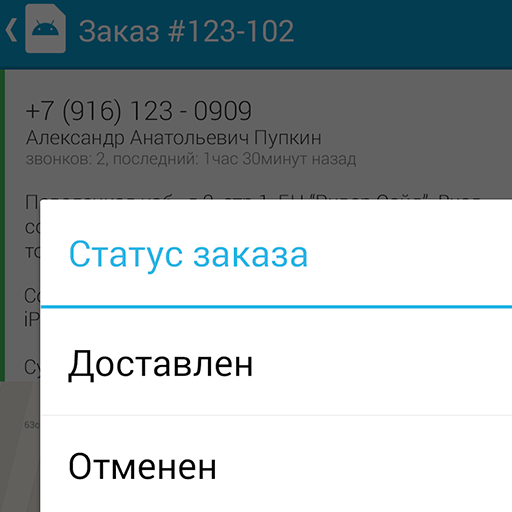 - актуальная информация о заказе