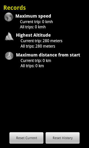 - maximum reached speed, maximum altitude and maximum distance to starting point for the current trip and all the trips your ever did.