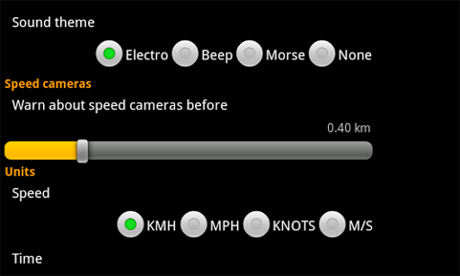 - Several sound options available: "Electro", "Beep" (just another sound to mark the speed limits) and "Morse", when aSpeedCam ScannerFix beeps morse-code for "ONE" when you crossing the first speed limit, "TWO" for second, and "THREE" for third. The startup sound is morse-coded word "HELLO".