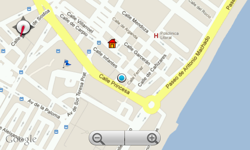 - Direct distance/time to Home location display: the time is calculated on a basis of your current speed, and should be understood as "minimal time necessary to get to stored Home location on a direct line with current speed". Home location can be reset by tapping the "lightning" icon, located next to the distance;