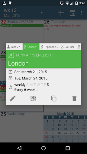 ● 48 colors per calendar, 12 per-event colors if supported by the calendar (Android 4.1+ with Google calendars only)