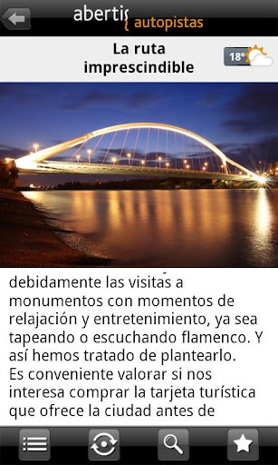 Totalmente gratuita, Abertis pone a tu disposición todo lo que quieres saber sobre la ciudad que visitas. Esta app para teléfonos Android reúne la historia de una ciudad, sus puntos de interés, dónde tomar algo, dónde comer, los locales nocturnos, los centros de compras… y, por supuesto, a qué distancia exacta están de ti y cómo puedes llegar hasta allí. Todo a tu disposición ¿quieres verlo?