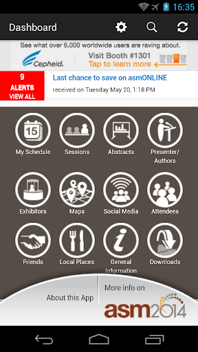 The asm2014 mobile event app helps you create your conference schedule. Browse sessions, special events, speakers, posters, abstracts, and more. Plan your time in the Exhibit Hall with the exhibitor directory and create your list of "must-see" product and service providers. View maps of the Convention Center and the Exhibit Hall and interact with fellow attendees through social media channels.