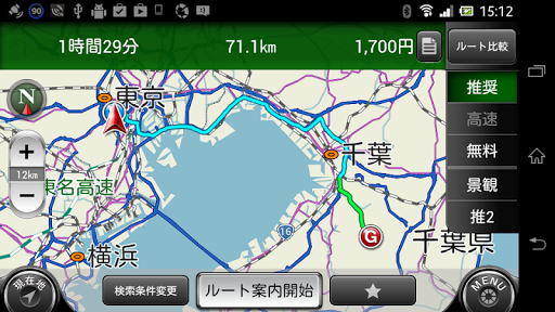 1分ごとに更新されるVICS渋滞情報を考慮し、快適なルートを提案