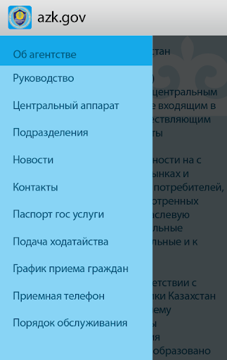 Приложение позволяет получить актуальные данные агентства Республики Казахстан по защите конкуренции: